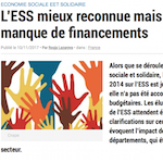 "L’ESS mieux reconnue mais en manque de financement" titre la Gazette.fr