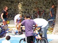 Avec le soutien de la Fondation de France, nous avons par exemple créé un logiciel de gestion pour les ateliers. Nous proposons à nos membres des formations sur la pédagogie, la mécanique et la soudure, ou encore la gestion d'un atelier. Nous organisons également des achats groupés de pièces et d'outillage. En parallèle, nous apportons aux adhérents un appui technique et accompagnons la naissance de nouveaux ateliers. Enfin, nous communiquons en direction du grand public. Notre site internet possède une carte web des ateliers en France et en Europe et nous animons également Wiklou - le Wiki du Biclou !- où sont rassemblées des fiches techniques sur la réparation des vélos, sur la création d'un atelier, sur les animations de rue, ... .