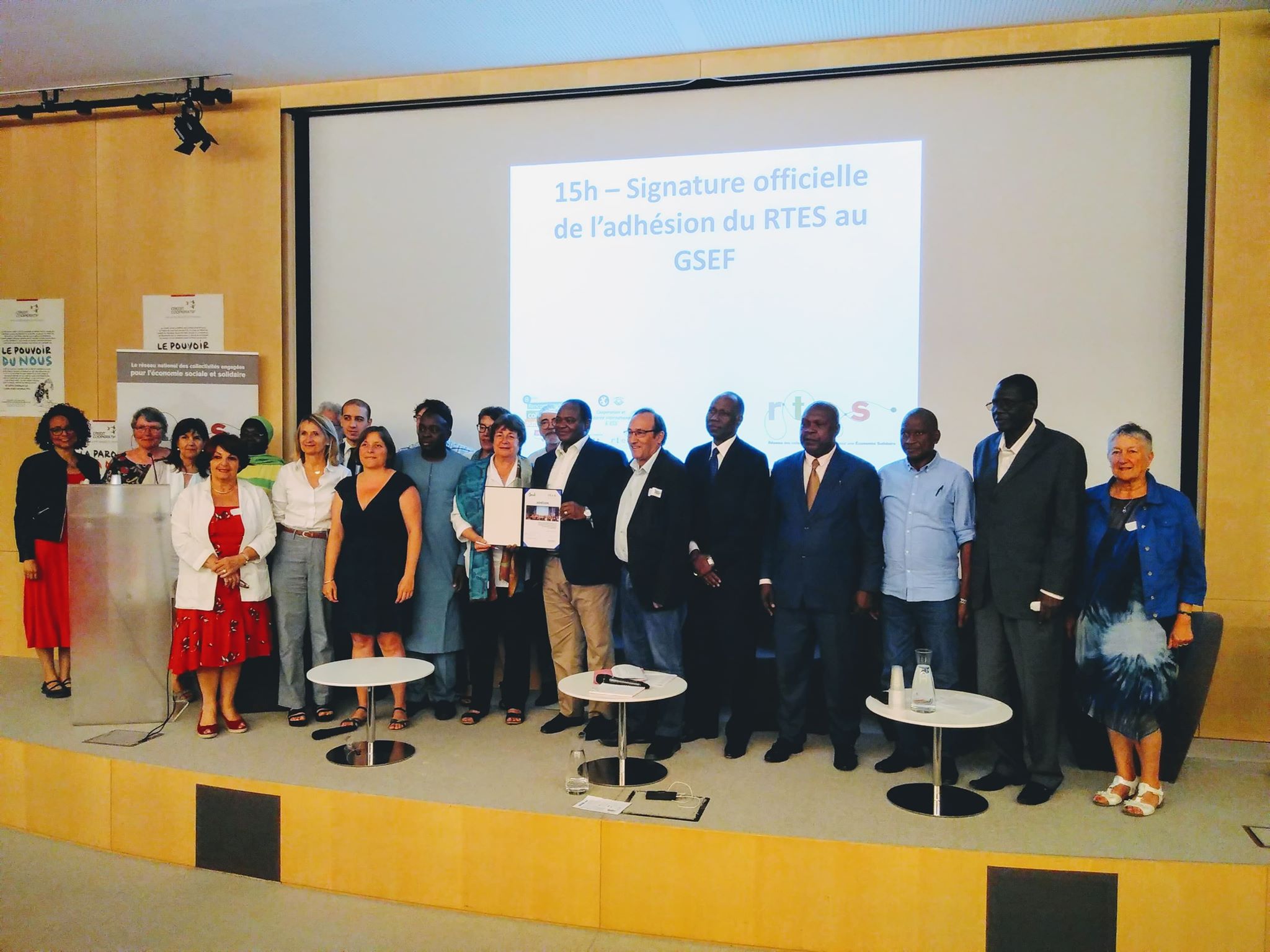 Après la signature de l'adhésion du RTES au GSEF, photo avec les élus du RTES et les autres élus présents