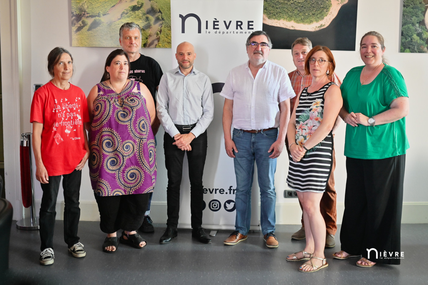 Le 26 juin 2023, Jean-Paul Fallet, Conseiller départemental délégué à l’Habitat et à l’Économie Sociale et Solidaire du Conseil départemental de la Nièvre remettait les prix aux lauréats, accompagné de Blandine Delaporte, Vice-présidente en charge des transitions, du fonds d’innovation et d’investissement territorial et du dialogue avec les habitants, et de Thierry Guyot, Conseiller départemental délégué à l’agriculture, à l’alimentation de proximité et à l’insertion.