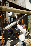 La famille est accompagnée par un animateur technique professionnel qui va l'aider à construire un programme de travaux prioritaires. Chez un locataire, les travaux ne peuvent évidemment concerner que l'entretien et les réparations liés à la responsabilité locative. Mais nous intervenons également auprès de certains ménages, propriétaires de leur logement mais qui ne peuvent faire face à son entretien, dans ce cas, tous types de travaux sont possibles. Mais l'objectif n'est pas seulement d'améliorer l'habitat, les chantiers sont l'occasion de s'impliquer dans un projet, de mobiliser la famille, le voisinage et les amis, de créer du lien et d'installer une ambiance de partage et d'entre-aide.