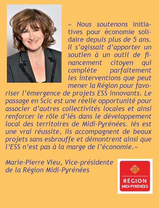 En 1998, des citoyens de Ramonville et de Toulouse en Midi-Pyrénées mettent en commun leur épargne pour constituer un fonds au service de la création d’emplois, notamment à destination des personnes les plus défavorisées. S'inspirant du modèle d'Autonomie et Solidarité dans le Nord-Pas-de-Calais, ils créent Initiatives pour une économie solidaire (iés), une société anonyme coopérative de capital risque à capital variable. En janvier 2010, iés se transforme en SCIC (Société Coopérative d’Intérêt Collectif). Rencontre avec Bruno Langlet, président de la SCIC iés.
