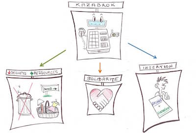 Proche de la philosophie Emmaüs, notre brocante solidaire a été créée en 2007 et est devenue l'association Kazabrok en 2009. Elle poursuit un double objectif : tendre vers le zéro déchet ultime tout en insérant des publics en difficulté, notamment des jeunes sous main de justice. J'ai comme principe de trouver une solution avec deux problèmes majeurs de notre territoire, que sont la précarité sociale et la délinquance d'une part, et la gestion des déchets d'autre part.
