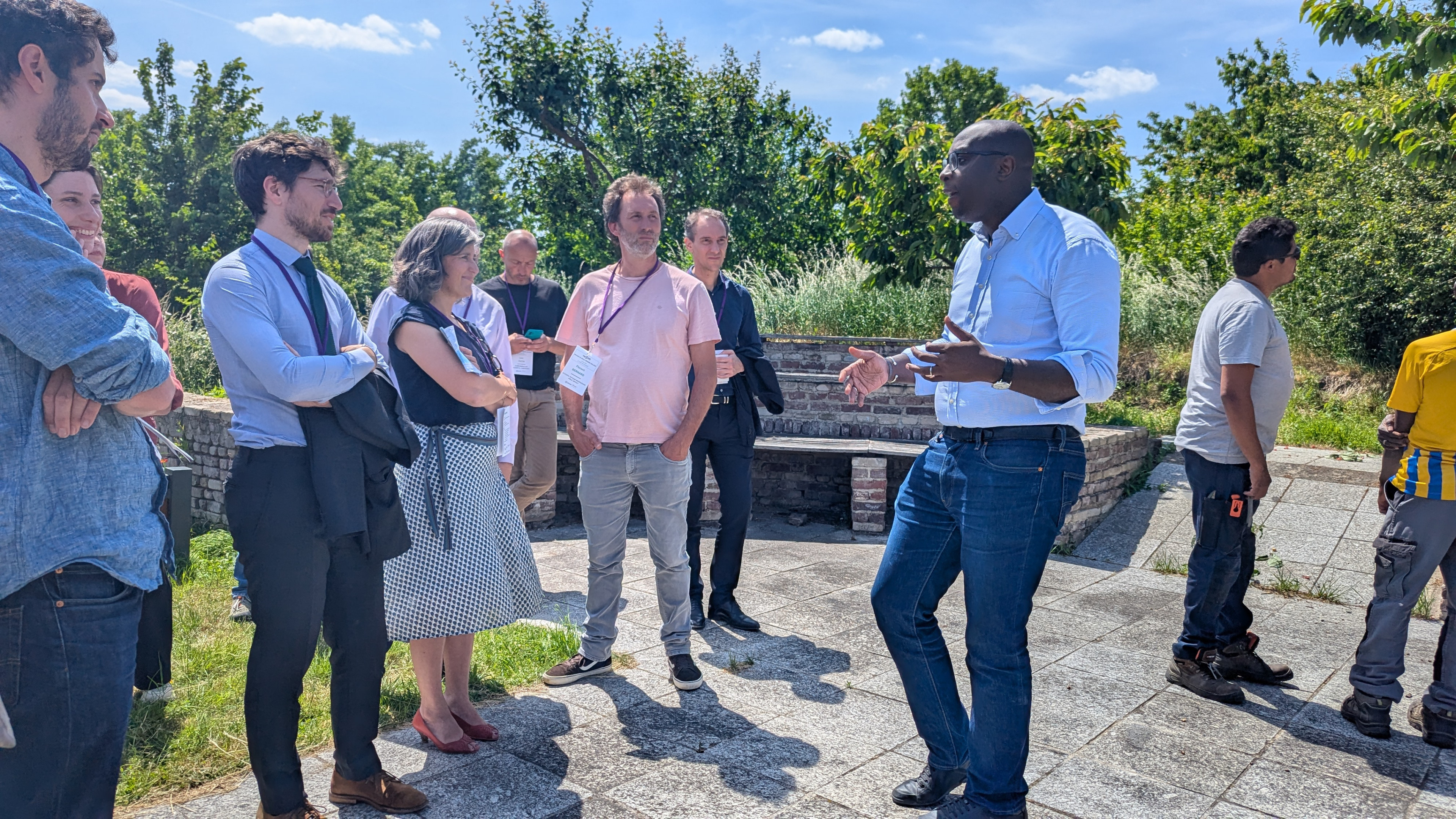 Visite du terrain et du bâtiment Résilience, avec Mohamed Gnabaly, maire de l'Ile-Saint-Denis et fondateur de la Ferme des possibles.