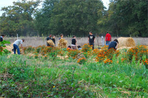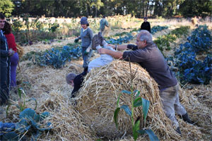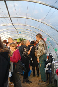 A l'origine Terre d'ADELES devait être une AMAP. Mais, l'histoire en a voulu plus ! Les promoteurs de cette Association pour le Développement d'Echanges Locaux Equitables et Solidaires ont favorisé l'installation d'une maraichère sur la commune. Mieux, ils l'ont salariée. Ainsi est né le Jardin d'ADELES. En 2007, la ville a mis à disposition de Terre d'ADELES 2,5 hectares et une subvention de 135.000 € en investissement pour constituer l'un des plus grands jardins partagés de France. Ce jardin est à la fois lieu de production maraîchère (près de 6 tonnes de légumes produits en 2009), vitrine du jardinage au naturel (pas de chimie, pas de motorisation sauf pour la pompe à eau !), espace de convivialité, support d'actions d'insertion et pépinière d'initiatives solidaires. Ainsi, l'association rassemble 200 familles autour de 8 AMAP et un SEL. Le mariage du Jardin et du SEL d'ADELES a donné d'heureux Jardiniers SELidaires qui partagent les cultures à raison de deux par semaine et bénéficient des paniers de légumes au quart du prix. Le CCAS de Pessac co-finance cette opération. Outre une dizaine de Jardiniers SELidaires et désormais cinq salariés, sont associés aux cultures les familles bénéficiaires des paniers de légumes dans le cadre de chantiers collectifs, des Jeunes en service civil volontaire via le réseau Uniscité et d'autres via des chantiers éducatifs co-pilotés par la ville et Action Jeunesse, son club de prévention. Fort de cette expérience, Terre d'ADELES participe à l'animation de quatre autres jardins partagés pessacais et vient de se voir confier la mission de lancement d'un jardin communautaire sur une autre commune.