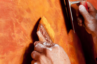 Mathieu Barrois - PDG Scic ôkhraEn 1994, mon épouse et moi [58] souhaitions créer une activité autour de la transmission de savoir-faire liés à des matériaux ancestraux et d'usage courant. Lors de nos visites de sites industriels, nous sommes tombés sur une ancienne usine d'ocre à Roussillon. L'ocre, matériau d'usage millénaire, correspondait à nos critères et le territoire était encore profondément marqué de l'empreinte des activités économiques ocrières. Un écosystème subsistait avec des artisans, une usine de fabrication d'ocres en activité, une friche industrielle disponible appartenant à la commune de Roussillon, des partenaires publics intéressés par un projet de cette nature (commune et Parc naturel régional du Luberon), une demande du public… Ce contexte permettait d'accueillir un projet de conservatoire tel que nous l'envisagions : un lieu vivant où la conservation des savoir-faire passe par la pratique.