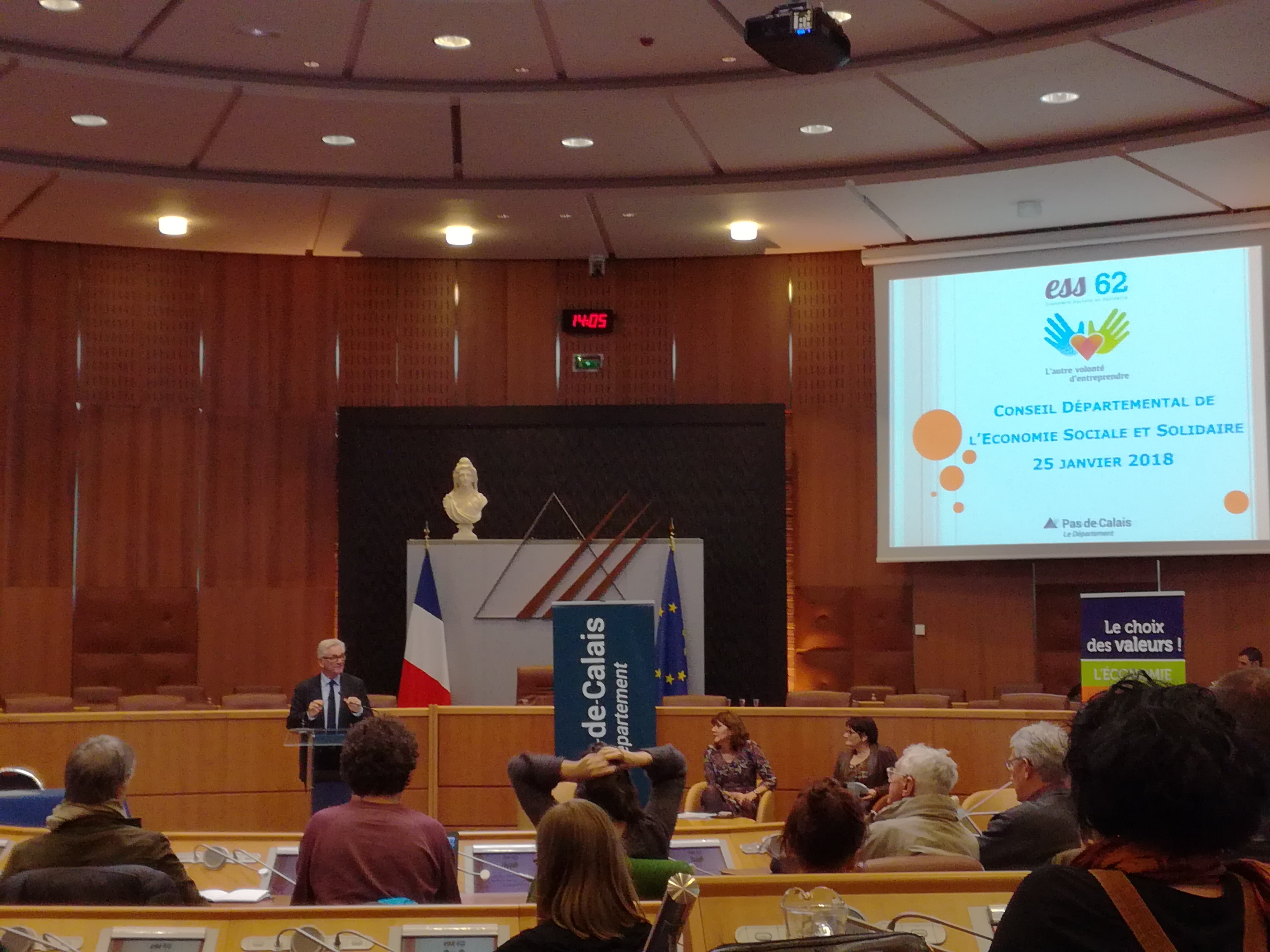Dans un hémicycle comble, le président du conseil départemental, Jean-Claude Leroy, a rappelé en introduction que, en dépit de la perte de la clause de compétence générale, le conseil départemental poursuit sa politique de soutien à l'économie sociale et solidaire, présente en filigrane dans les autres politiques du département: restauration collective, achats responsables, monde rural... L'ESS constitue un terrain d'expérimentation, d'échanges, et du faire autrement que le département souhaite soutenir en appuyant les initiatives locales.