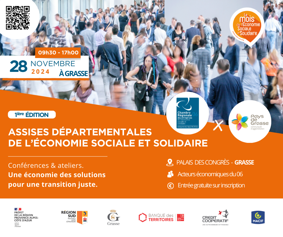 Dans le cadre du Mois de l'économie sociale et solidaire qui a lieu chaque année en novembre, la CRESS Provence-Alpes-Côte d'Azur et la Communauté d'Agglomération du Pays de Grasse coorganisent la 1ère édition des Assises départementales de l'ESS 06 le :
