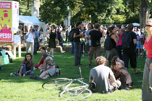 YESS! Le beau temps était de la partie mais ne suffit sans doute pas à lui seul à expliquer le succès de la manifestation. Axé avant tout sur une approche pratique, des animations concrètes et interactives, le programme d’une richesse exceptionnelle a conquis le public. Les visiteurs de tous les âges sont venus nombreux découvrir, s’informer et tester les propositions à forte plus-values sociales et environnementales portées par les structures participantes et ceci dans les diff érents domaines de la vie quotidienne : logement, emploi, éducation alimentation, consommation, services, culture.