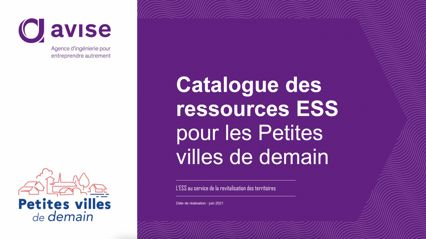 Un catalogue des ressources ESS a été élaboré afin de réunir et de mettre à disposition les publications principales et autres supports pouvant aider les collectivités bénéficiaires du programme Petites villes de demain à inscrire l’ESS dans leur projet de territoire. À travers la valorisation de productions émanant d'une grande variété d'acteurs (Avise et RTES, CRESS, Fondations, Banque des Territoires,...), le document a pour ambition de favoriser l’innovation sociale et de souligner ses atouts dans la revitalisation des territoires.