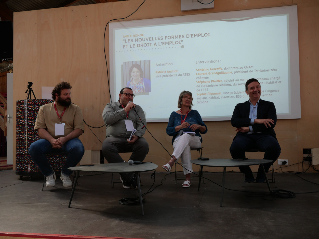 Une table ronde était organisée sur les nouvelles formes d'emploi et le droit à l'emploi, avec Sandrino Graceffa, doctorant au CNAM, Laurent Grandguillaume, président de Territoires zéro chômeur de longue durée, Sophie Piquemal, vice-présidente chargée de l'urgence sociale, l'habitat, l'insertion et l'ESS du Département de Gironde, et Stéphane Pfeiffer, adjoint au maire de Bordeaux chargé de l'urbanisme résilient, du service public de l'habitat et de l'économie sociale et solidaire. La table ronde a été animée par Patricia Andriot, vice-présidente du RTES.