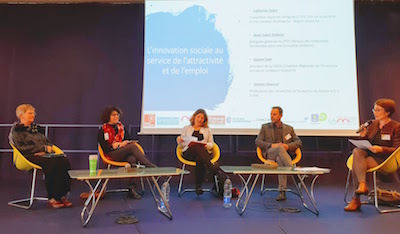Anne-Laure Federici pour le RTES intervenait lors de la table ronde d'ouverture, "L’innovation sociale au service de l’attractivité et de l’emploi", aux côtés de Catherine Zuber, conseillère régionale déléguée à l'ESS de la région Grand Est (et administratrice du RTES), de Djamel Didi, directeur de la CRESS Grand Est et de Josiane Stoessel, responsable du Master ESS de l'université Haute-Alsace.