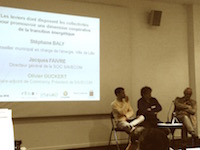 La 1ère table ronde était consacrée aux projets citoyens de transition énergétique locale, et au rôle d'impulsion et d'accompagnement des collectivités, avec la présentation de 3 initiatives: