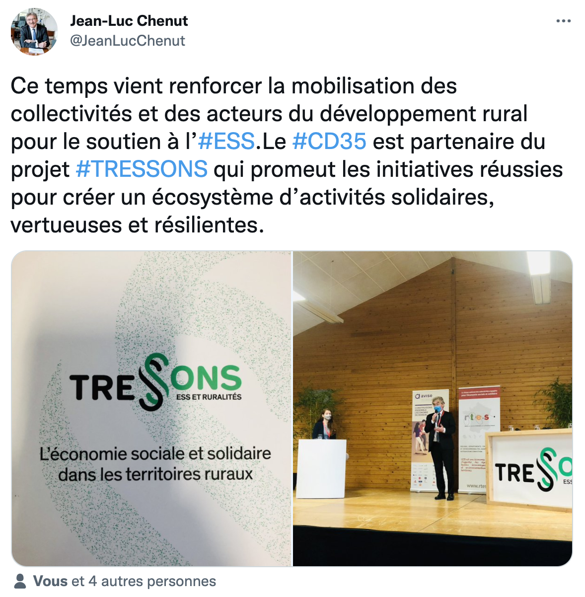 Pour rappel, le projet TRESSONS, animé par l'Avise et le RTES de 2018 à 2021, est un des lauréats de l'appel à projets Mobilisation Collective pour le Développement Rural du Réseau rural national, bénéficiant du soutien du Fonds européen agricole pour le développement rural (FEADER). Ce projet vise à analyser et renforcer l’impact de l’ESS sur les territoires ruraux, identifier les leviers d’action, permettre le partage d’expériences entre acteurs des territoires et notamment collectivités locales, et analyser la manière dont le FEADER et les fonds européens sont ou pourraient être mobilisés pour contribuer au développement de l’ESS.