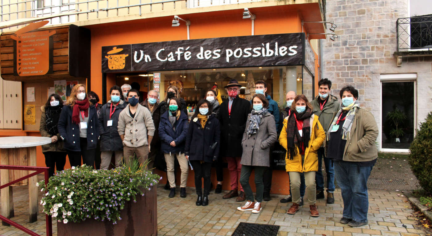 Le séminaire commençait par des visites dans les communes de Guipel et Langouët de projets ESS qui répondent aux besoins des habitant.e.s des territoires ruraux d’Ille-et-Vilaine, occasion d'échanger avec celles et ceux qui y soutiennent et développent l’ESS. Sur la commune de Guipel, les participant.es ont été accueilli.es par la maire de Guipel, Isabelle Joucan et son prédécesseur Christian Roger, au Café des possibles, société coopérative d’intérêt collectif (SCIC) portant à la fois une épicerie, un restaurant, un bar et une programmation culturelle. Plusieurs acteurs ont pu y présenter leur initiative, notamment le club Cigales "des Ruisseaux", la SCIC Les Survoltés qui réunit des citoyen.ne.s, collectivités et des acteur.trice.s privé.e.s pour œuvrer à la transition énergétique du territoire, et la coopérative Enercoop Bretagne, le "circuit court" des énergies renouvelables.